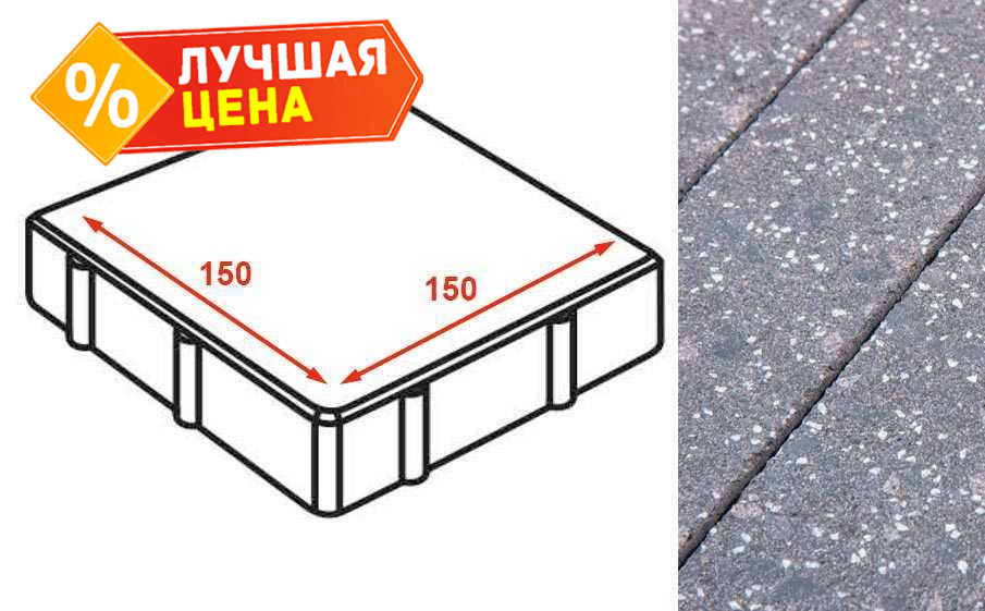 Плита тротуарная Готика Granite FINERRO, квадрат, Ильменит 150x150x80 мм